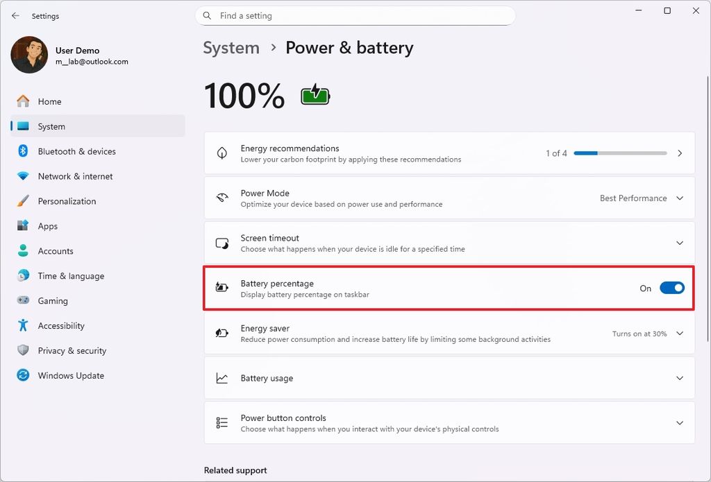 μ΄λ² ν¨μΉ νμμΌ μ λ°μ΄νΈμ μΌνμΌλ‘ Microsoftλ λ°°ν°λ¦¬ μμ΄μ½μ μλ‘μ΄ λμμΈμ μ 보μ΄λ©°, μ΄μ λ°°ν°λ¦¬ μμ΄μ½ μμ λ°°ν°λ¦¬ μλ(%)μ νμν μ μμ΅λλ€.