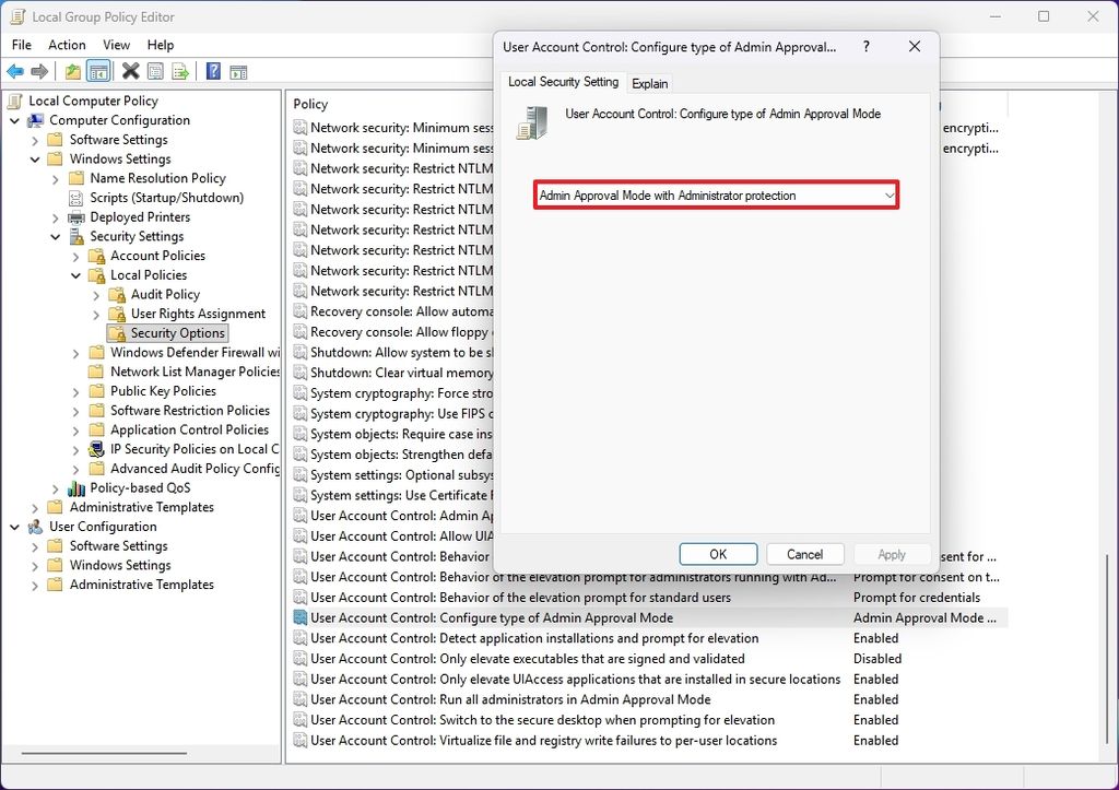 κ·Έλ£Ή μ μ± μ μ¬μ©νλ €λ κ²½μ°, μ»΄ν¨ν° κ΅¬μ± > Windows μ€μ > 보μ μ€μ > λ‘컬 μ μ± > 보μ μ΅μ μμ "μ¬μ©μ κ³μ 컨νΈλ‘€: κ΄λ¦¬μ μΉμΈ λͺ¨λ μ ν ꡬμ±" μ μ± μ μ¬μ©ν μ μμ΅λλ€.