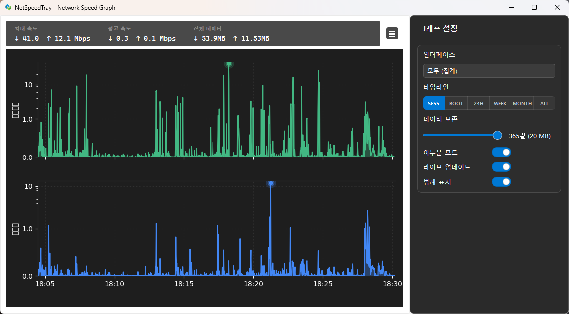 νμμ€μ μμΉνμ¬ μ€μκ° λ€νΈμν¬ μλλ₯Ό 보μ¬μ€λλ€.
