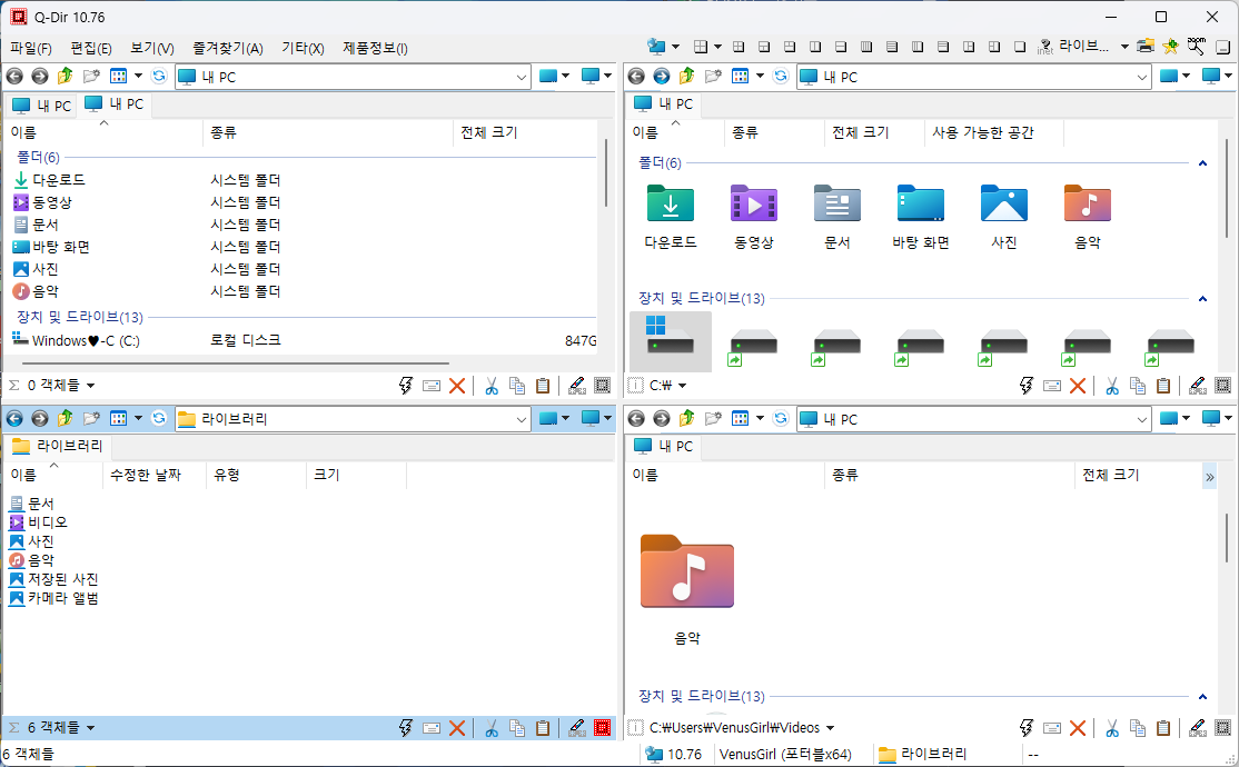 Q-Dir (4๋ถํ ํ์๊ธฐ)๋ฅผ ์ฌ์ฉํ๋ฉด ์ค์น๋๊ฑฐ๋ ํด๋์ฉ Windows ํ๋ก๊ทธ๋จ์ผ๋ก ํ์ผ๊ณผ ํด๋๋ฅผ ์ฝ๊ฒ ๊ด๋ฆฌํ ์ ์์ต๋๋ค. ํ๋ ๋์คํฌ, ๋คํธ์ํฌ ํด๋, USB-Stik, ํ๋กํผ ๋์คํฌ ๋ฐ ๊ธฐํ ์คํ ๋ฆฌ์ง ์ฅ์น์ ๋น ๋ฅด๊ณ ์ฝ๊ฒ ์ก์ธ์คํ ์ ์์ต๋๋ค. Q-Diri๋ ๋๋ผ์ด Quadro-View ๊ธฐ์ ์ ๊ฐ์ถ ์ฐ์ํ ํ์ผ ๊ด๋ฆฌ์์